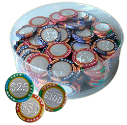 Milch-Schokolade / 5,2g 38 mm Durchmesser in Casinofolie (Farben gemischt)